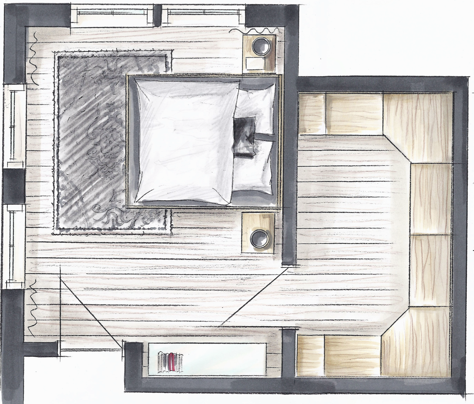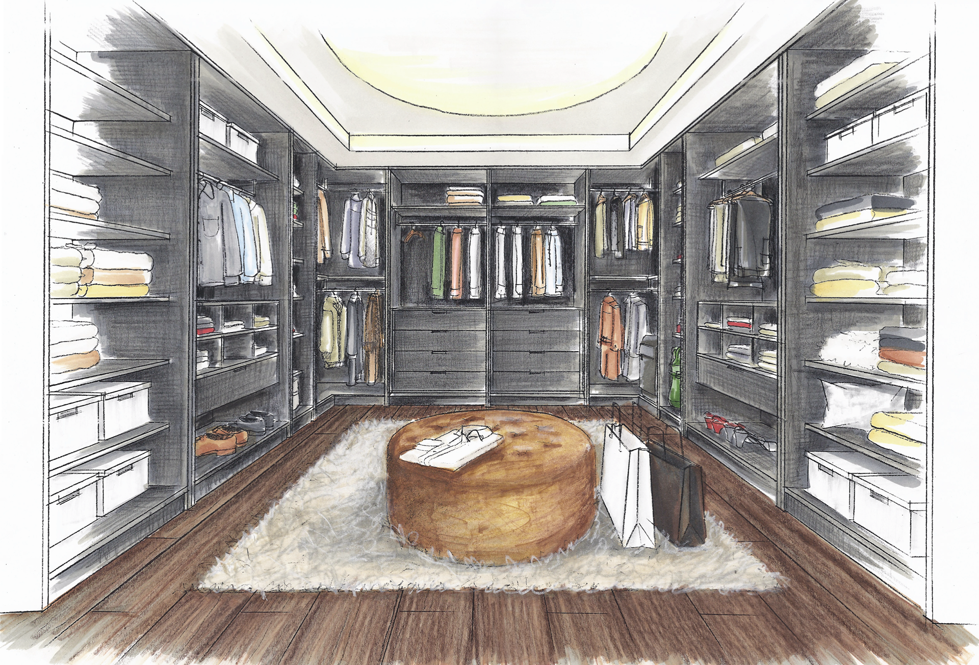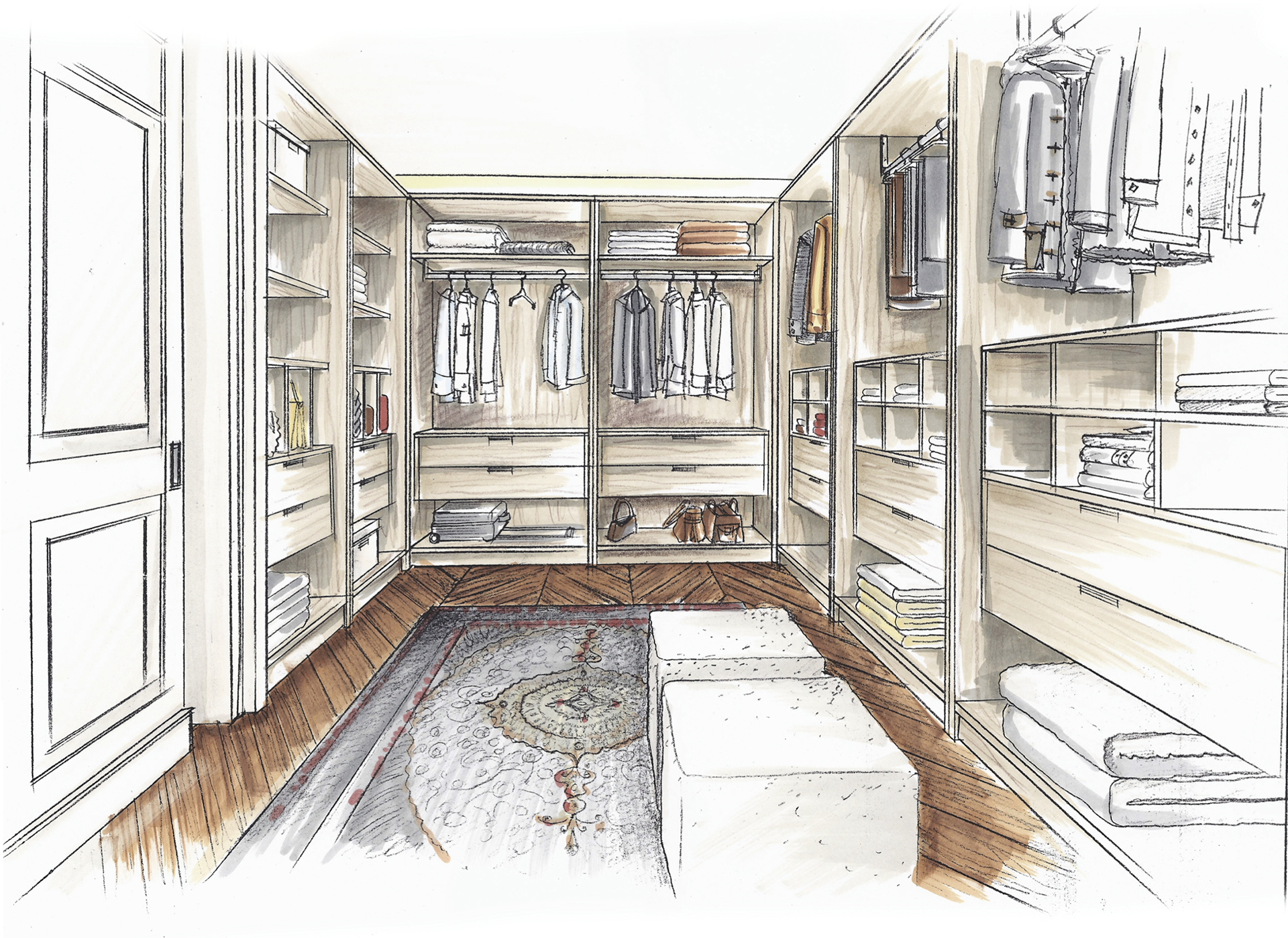 Colorierte Handzeichnungen für das Schranksystem Horizont 3000 für Printmedien